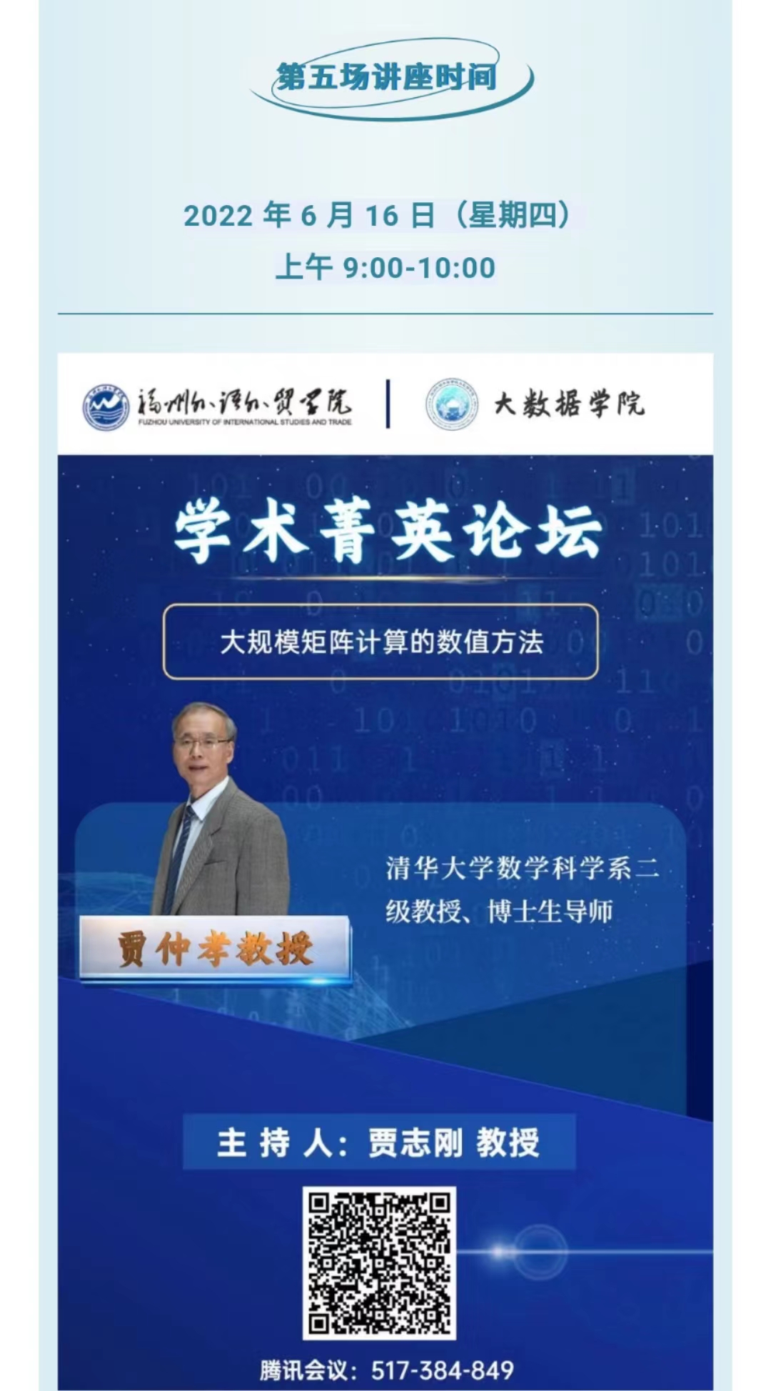 大数据学院于6月6日起陆续推出“学术菁英论坛”系列讲座。第一期拟敦请湘潭大学、苏州大学、中国矿业大学、东南大学、清华大学五位教授担任主讲嘉宾,主题涵盖张量特征值估计、OCCA、large and sparse higher-order PageRank problem、3DCCG、大规模矩阵计算的数值方法等领域。