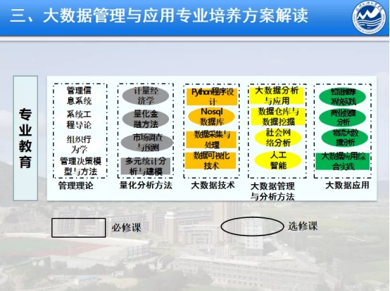 【2021新生入学教育】“起航!探索数据奥秘”专业介绍与专业规划主题教育 为引导我院2021级新生加强对所在专业的了解,尽快帮助其树立明确的大学目标。我院分别举行了信息管理与信息系统、数据科学与大数据技术、大数据管理与应用、电子商务专业线上介绍会和2021级新生入学教育线上会议。 PROFESSIONAL线上专业介绍会 信息管理与信息系统专业介绍会 信息管理与信息系统系主任曾姣艳副教授从专业概况、培养目标、课程体系与就业方向、师资队伍等基本情况进行了介绍,并结合个人经历提出学习建议。最后,曾姣艳副教授向新生们提出了殷切的希望,在新环境中能互帮互助,共同进步,成为一个有凝聚力的集体。 数据科学与大数据技术专业介绍会 数据科学与大数据技术系主任袁晓建副教授从什么是大数据进行展开阐述,从发展领域、就业岗位、专业方向与学习条件等进行详细介绍。最后,袁晓建副教授希望新生们在大一的时候就能够给自己树立目标,结合自己的个人能力做好规划。 大数据管理与应用专业介绍会 大数据管理与应用系主任姚洁副教授从专业教师团队讲起,将内容分为专业概况、培养方案、竞赛科研三大模块,从中详细阐述了课程设置、实践教学、专业方向等内容,使新生们对该专业的了解更加深入。最后,姚洁副教授就日后的学习及生活向新生们提出了建议和期望,尽快找到适合大学的学习方法,积极参与各类活动,丰富自己的大学生活。 电子商务专业介绍会 电子商务系主任谢人强教授针对专业的办学特色进行介绍。在专业师资力量、专业教学计划、实习技能提升、就业前景等多个层面展现了专业不同侧重特点。向新生们提供了更高效的学习策略和更深度的专业了解。最后谢人强教授表达了祝福,希望新生们前程似锦,都有一个光明的未来! 线上专业介绍会结束后,我院副院长叶福兰教授开展新生入学教育线上会议。 新生入学教育会议线上学习注意事项及精英班介绍 副院长叶福兰教授代表学院对2021级新生表示热烈的欢迎。她从学习动机与学习方法两个方面进行详细阐述,引导新生们深入思考上大学的初衷与目标。向新生们提供了更高效的学习策略,强调成功路上勤快、坚持、效率、耐心缺一不可。 叶福兰教授还对线上学习注意事项如:课表查询方法、上课平台、课程通知群等问题进行解答。详细介绍大数据学院国际化视野精英班的优势特色、考核机制、选拔条件等,鼓励新生们踊跃报名。 最后,叶福兰教授希望新生们作为新时代青年要珍惜大学时光,明确学习目标,有规划地成就属于自己的美好人生。 这次专业介绍会和新生入召开,让新生对自身学习规划的建立以及发展方向的选择有了更加清晰准确的认知,使之更好地融入大学学习生活。 大数据学院办公室 2021年9月26日