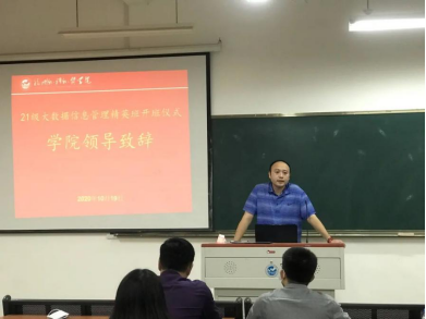 少年未来可期 | 2021级大数据信息管理精英班开班! 为了推动人才战略革新,促进学生高质量充分就业,切实帮助同学们端正态度、确立目标。10 月 19 日(星期二)下午 16:00,我院于教5309举行2021级大数据信息管理精英班开班仪式。 学院院长宁正元教授、副院长谢亚君教授、副院长、分党委书记陈宏伟副教授以及精英班导师出席本次仪式。仪式由副院长叶福兰主持。 陈宏伟上台发言,对精英班的同学们提出三点建议。一是做好自我定位,让自身优势焕发活力。精英班的同学们要充分发挥自身优势,全面提升自己。二是做好自我规划,让未来发展稳中有力。要尽心早完善自身规划,争先创优,在专业领域取得优异的成绩,实现考公、考研、国企等高质量就业。三是做好榜样引领,让先锋典型影响有力。要做到树立先进典型,服务其他同学。 宁正元提出作为精英班的同学们首先必须要戒骄戒躁。期望同学们不仅考虑当下,更要目光长远,特别是数学基础要打牢,勤于思考,将所学的知识融会贯通,学以致用。除此之外,还强调同学们自立,养成好习惯,明确学习目标,完善知识体系,提升工作能力。坏习惯会对学习产生不好的影响,希望同学们能够保持初心,沉淀自我,不断进步。 最后,叶福兰宣布本次开班仪式圆满落幕。同时,也对同学们提出殷切希望,希望同学们在接下来的日子里能够努力探索,迎接挑战,以后的人生道路将会愈加精彩,未来可期。 开班结束后,同学们与导师开始第一次见面会,与导师深入交流,从中受益匪浅并表示会跟随导师的脚步,在四年的大学生活中,努力提升自己! 大数据学院办公室 2021年10月20日