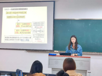 参加比赛的青年教师们依次进行了精彩的讲授。各位教师授课思路清晰,课件图文兼备,讲解生动有趣。授课过程中,他们积极和台下互动,将课件的内容以最通俗易懂的方式讲得面面俱到;通过真切的举例将枯燥的理论文字具体化、现实化;无论是一元线性回归分析,还是概率论与数理统计,乃至代码的撰写、类与对象的差异对比课题都很好的讲授出了自己的特点,充分展现了我院青年教师丰富多元的知识储备,严谨认真的教学态度,结合实践的教学观念。赛后,各位教师积极互动交流,做到了经验互通,教学相长。
