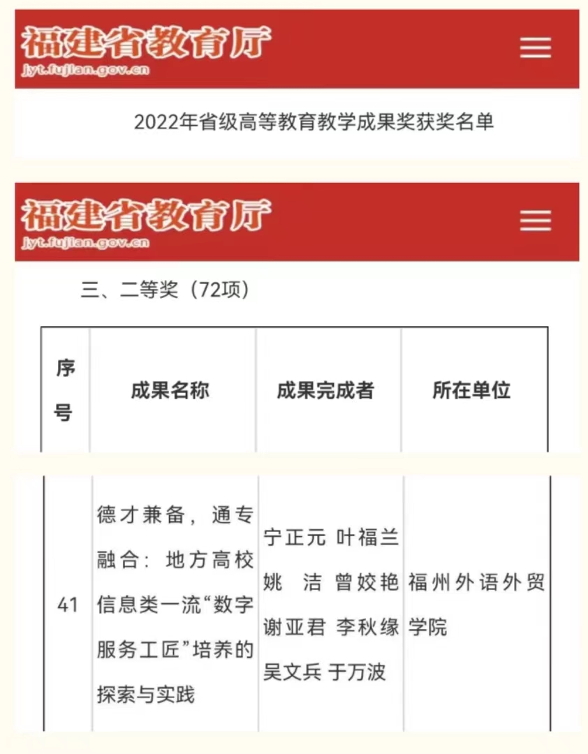此奖项是本年度福建省民办本科高校获得的最高奖项,学院将以此为动力继续深化教育教学改革,进一步推进一流“数字服务工匠”人才培养的探索与实践。