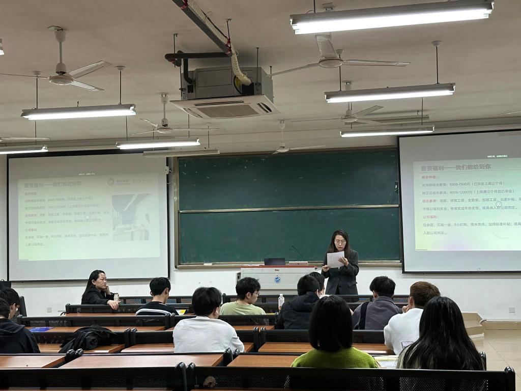 首先,黄晓燕女士详细介绍了公司背景以及公司目前发展状况及招聘岗位的任职要求;分享了企业文化、办公环境、丰富多彩的党团活动以及丰厚的员工福利等;随后同学们根据自身需求向负责人提出问题,黄晓燕女士的详细讲解和耐心解答,让同学们对相关岗位有了更深的了解。