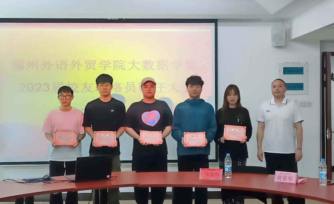 会议始,杨兴鑫老师介绍出席本次会议的领导老师,并阐述校友联络员的重要性。随后,黄荣华老师宣读《 福州外语外贸学院大数据学院开元网页版校友联谊会校友联络员的聘任决定》及《2023届校友联络员名单》,随后陈宏伟书记为校友联络员颁发聘书。紧接着,夏煜超同学作为校友联络员代表发言。他强调,校友是母校可持续高质量发展的可信赖力量,是校友与校友之间、校友与母校之间沟通的重要桥梁。他倡导联络员们积极为同学与母校服务,继承和弘扬母校的精神。