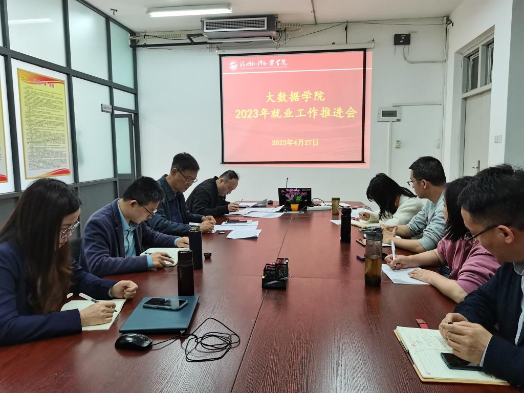 4月27日上午,大数据学院在学院会议室召开2023年招生及就业工作推进会,全体院务会成员参加会议。分党委书记、副院长陈宏伟主持会议。