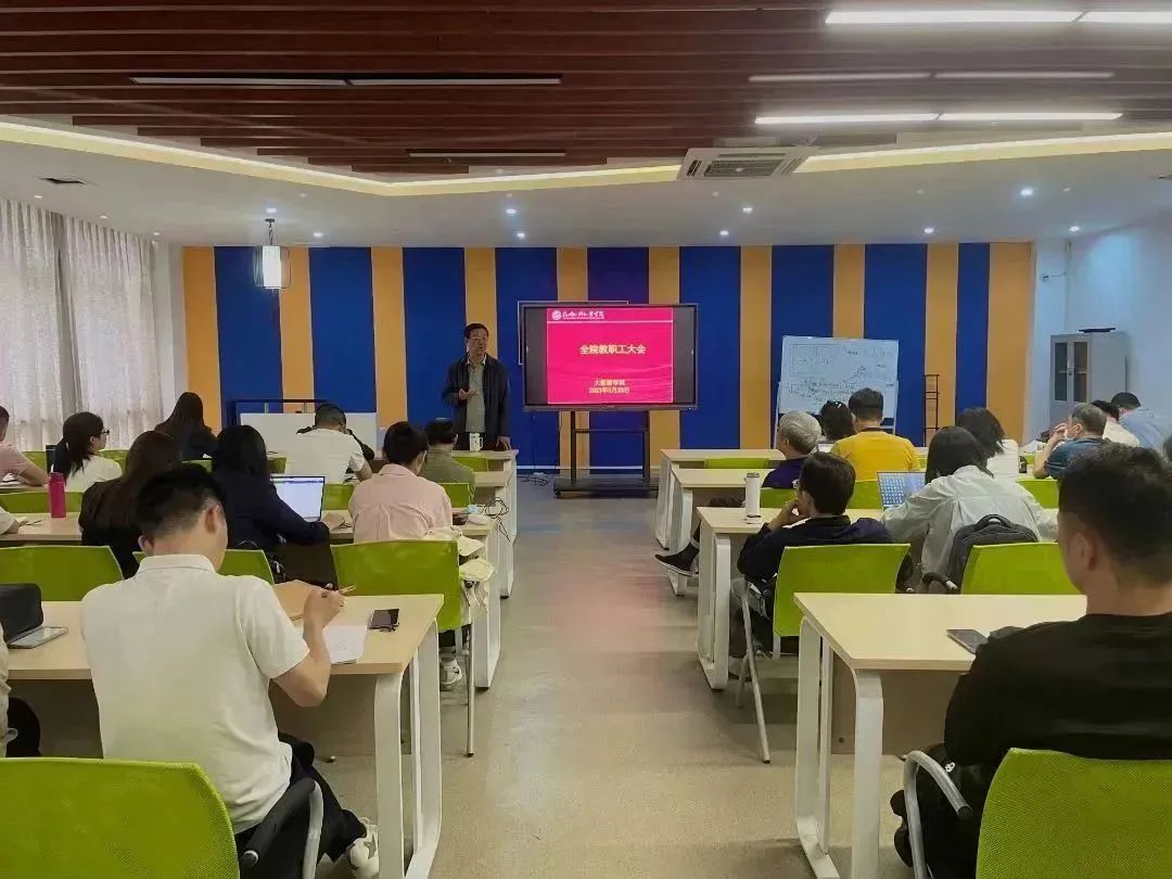 5月23日下午,我院于教5403召开全体教职工大会,大会由院长宁正元主持,副院长、分党委书记陈宏伟、副院长谢亚君、叶福兰及全体教职工参会。