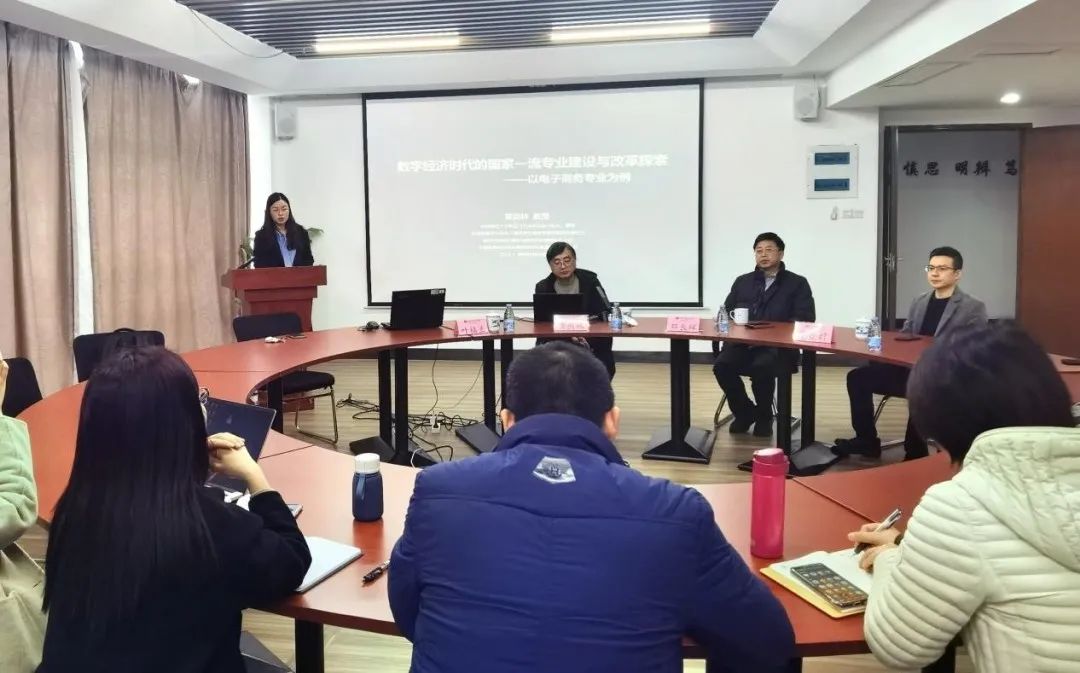 1月20日下午,我院邀请杭州师范大学阿里巴巴商学院执行院长、教育部高等学校电子商务类专业教学指导委员会副主任委员章剑林教授在在五楼多功能研讨室作“数字经济时代的国家一流专业建设与改革探索——以电子商务专业为例”专题报告。院长邓长辉,副院长谢亚君、叶福兰出席,各系(副)主任及全体专任教师聆听了报告。报告由叶福兰副院长主持。