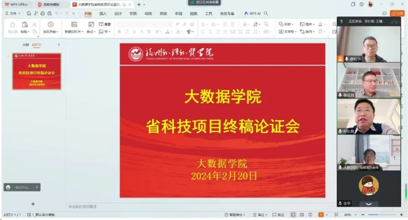大数据学院召开省科技厅项目终稿论证会 为做好2024年度省科技厅项目申报工作,确保顺利完成申报工作。近日,我院通过腾讯会议在线上成功召开了省科技厅项目终稿论证会。会议邀请了厦门大学李绍滋教授、福州大学刘勇进教授、福建师范大学王健教授作为此次论证会评审专家,校科研发展中心主任吴钦缘、副主任黄丽华、院长邓长辉、副院长谢亚君及相关工作人员参加了会议,会议由谢亚君副院长主持。 会上,邓长辉院长代表学院对与会的专家们表示衷心感谢。他表示,学院始终将科研工作置于核心地位,秉承“以研促学”的工作总方针,意在通过高水平的科研活动推动学科教学的发展。并希望各位专家能提供宝贵意见,提升项目申报的质量,从而增强我院在科研领域的竞争力。 随后,谢亚君副院长向与会专家介绍了申报项目的基本情况并汇报了项目目前的进展。各专家聚焦于项目实质,从建设目标、建设内容及可行性方案等方面对各项目进行了深入的质询,并针对申报项目中存在的问题提出了中肯的建议。各项目负责人表示将结合专家意见,严谨认真地继续完善申报材料。 此次省科技厅项目终稿论证会的成功召开,不仅促进了科研项目的申报和孵化,还搭建了学院教师与业内知名专家之间沟通交流的桥梁。展望未来,我院将持续坚定地深耕科研沃土,矢志不渝地提升科研工作的品质与水准,为将我校建设成为一流应用型高校添砖加瓦! 大数据学院办公室 2024年2月29日