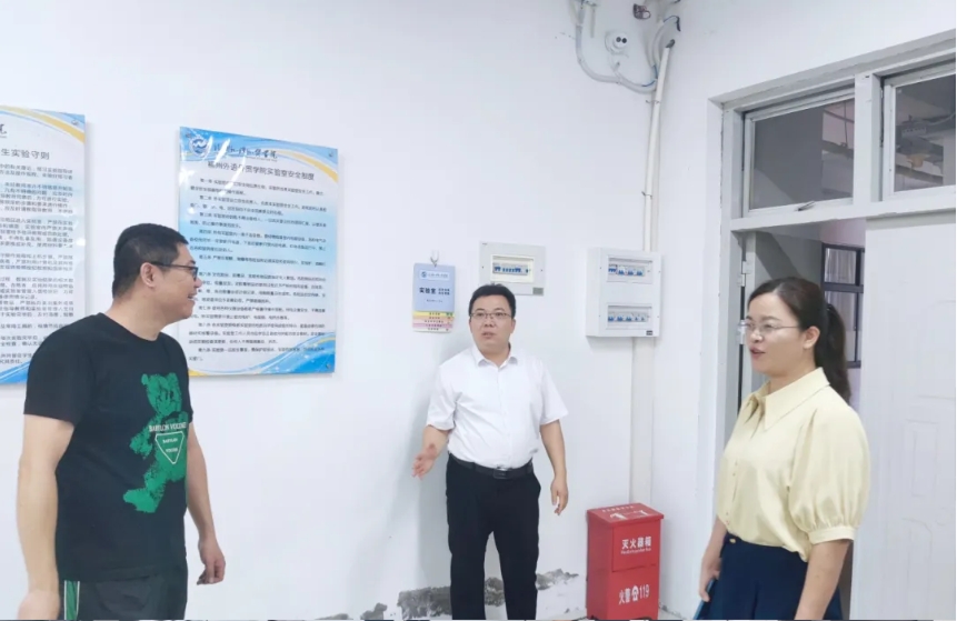 为保障2024年秋季学期顺利开学并进一步加强实验室安全管理,全力营造一个安全、和谐、有序的校园环境。8月29日下午,陈震院长亲自率队对学院办公区域及实验室进行了全面而细致的安全大检查。