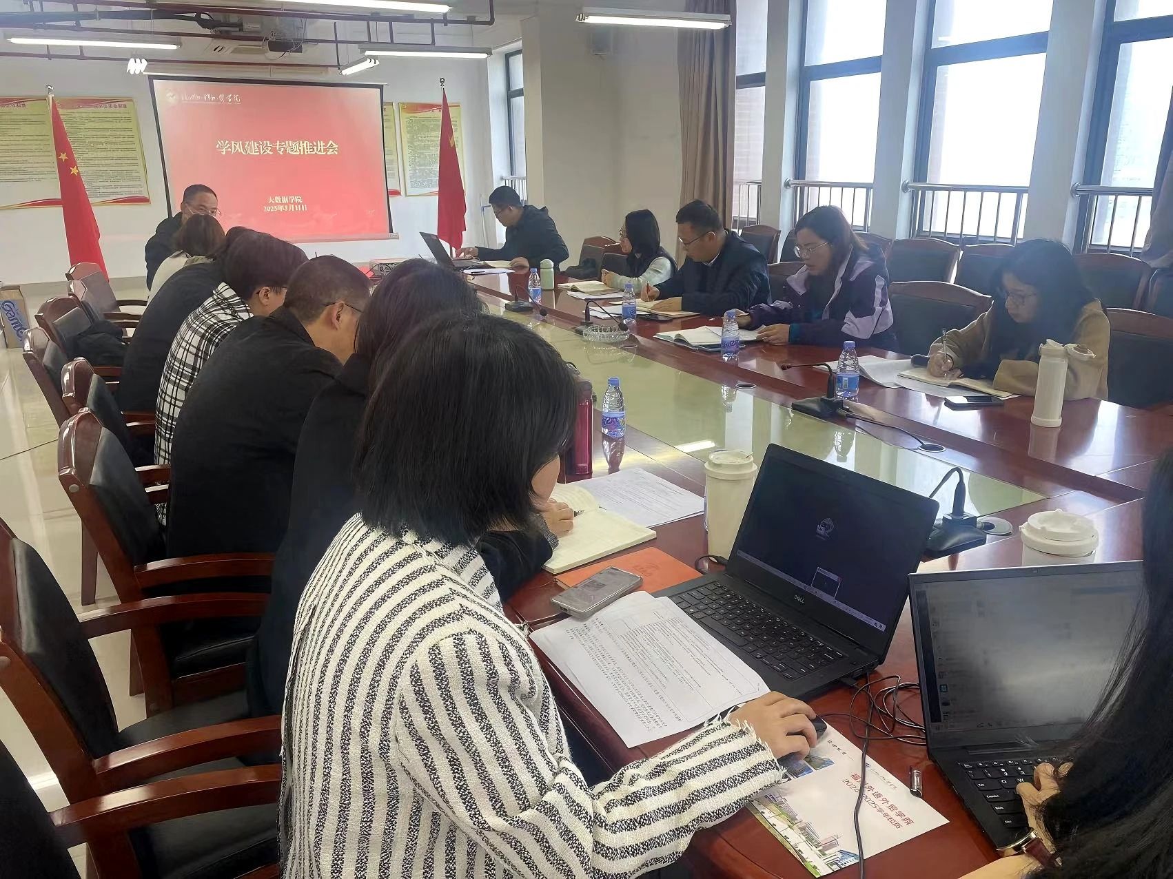 【数院动态】大数据学院召开学风建设工作推进会 为进一步加强学院学风建设,3月11日上午,大数据学院召开本学期学风建设工作推进会。学院领导、各系(副)主任、办公室负责同志及相关人员参加会议。 与会人员一起交流了当前我院学风存在的主要问题,并提出针对性措施。副院长叶福兰强调学院各方要齐发力,推进学院学风在攀升。一是上课教师要加强教学过程管理,提高课堂教学质量;二是各系与学院督导协同做好教学质量专项检查,对教师授课、学生学习情况进行督查。汪翠茹书记传达了学校《开展优良学风建设年活动》的方案,并要求一是开好主题教育,各年级专业召开学风建设动员主题教育会,持续做好每日上课考勤督查。二是加强沟通配合,辅导员与任课教师之间要加强协作,共同促进学风建设。 陈震院长做总结讲话,他指出,学风建设是常抓不懈的工作,是学院人才培养的核心环节,是提高教学质量和培养优秀人才的重要保障。一是要构建学院“学院统筹+系部联动+师生协调”学风建设工作体系,形成学风建设工作合力;二是要实施“学业预警-帮扶-提升”阶梯式培养计划,针对学业困难、学生积极性较低等问题深入研究,落实举措;三是要把握考试季、就业季等关键时间节点,针对性做好各项教育引导。他要求,各系要认识到当前我院在学风建设方面还存在的一些短板,加强“教学”协同,抓细、抓实学风建设,共同建设大数据学院良好的学风,确保审核评估工作顺利完成。 大数据学院办公室 2025年3月12日