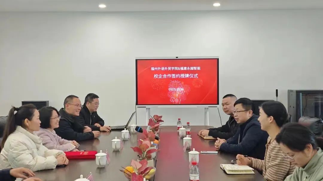 永越智能总经理涂德贵代表公司对我院师生一行表示欢迎,介绍了企业生产经营现状和创新发展工作。汪翠茹书记与涂德贵总经理共同签署了校企合作协议并授牌。
