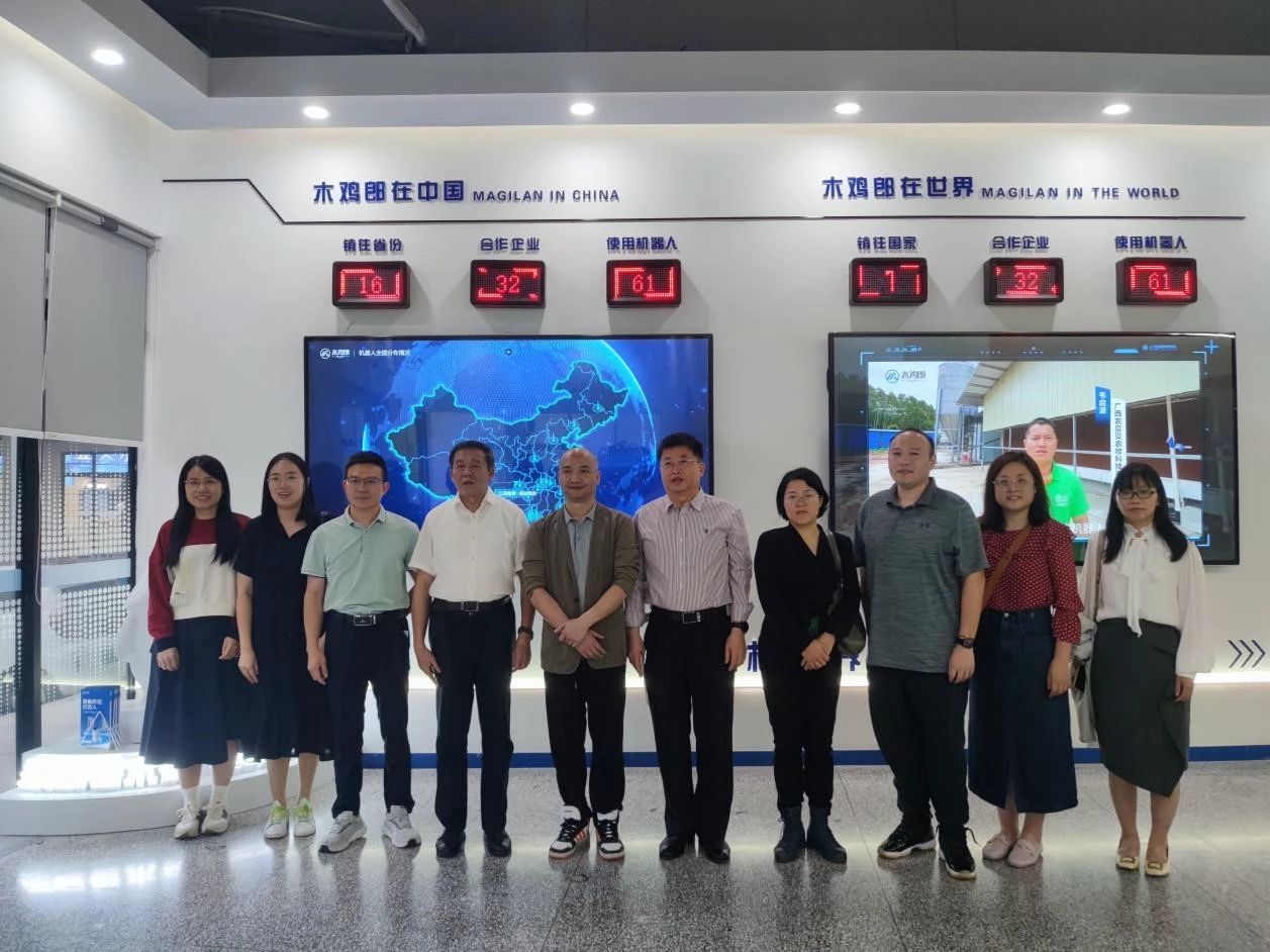在福州木鸡郎智能科技有限公司,企业负责人廖新炜带领黄鸿鸿一行实地参观了企业展厅,从木鸡郎在中国、木鸡郎在世界、企业的产品功能和水平、企业荣誉及产品迭代等方面介绍了企业的发展历史和成就。
