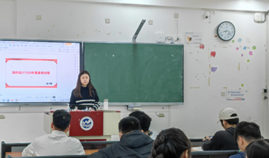 孟小璐开展“如何设计与分析量表类问卷”专题讲座 2021年12月7日下午,孟小璐老师在教4103开展开元网页版“如何设计与分析量表类问卷”专题讲座,本次讲座主要面向19信息管理与信息系统专业的学生。孟小璐老师主要介绍了量表类问卷的适用场景及其应用现状、量表类问卷的设计方法和分析方法,同时结合案例给大家演示了如何设计与分析量表类问卷。通过本次讲座,为学生在科研过程中使用问卷调查法提供了更多的研究思路,同时也让学生对本专业相关知识的实际应用有了更深入的了解。 大数据学院办公室 2021年12月7日