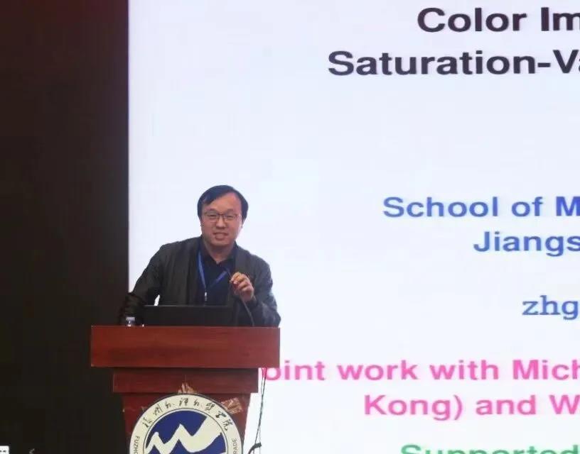 贾志刚以“Color Image Restoration by Saturation-ValueTotal Variation”为题探究了用于灰度图像边缘恢复的全变分正则化方法。他提出并发展了一种新的饱和度值(SV)颜色全变差正则化方法,并将研究SV全变差正则化的性质以及由此产生的彩色图像恢复优化模型加以诠释。数值算例表明,新的SV全变分方法在多种指标上优于现有的彩色图像全变分方法,为彩色图像的复原提供了技术条件和支持。