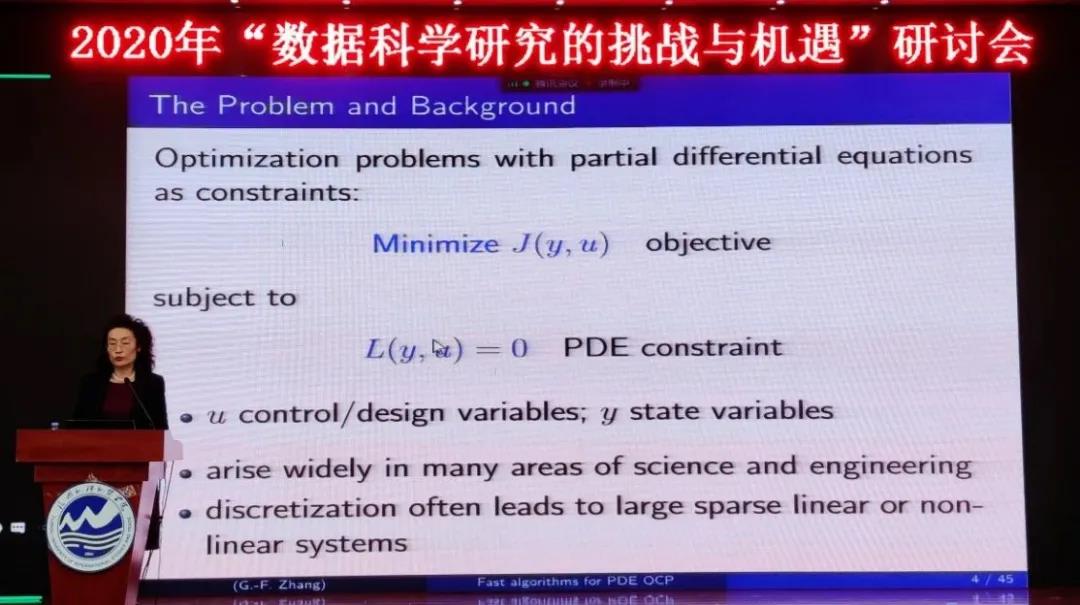 张国凤以“Fast algorithms for time-harmonic PDE optimalcontrol problems”为题,从时谐偏微分方程约束优化问题的离散化出发,研究一类结构线性系统的鲁棒预处理,并提出了鲁棒参数化预处理方法,进行了数值实验,数值结果表明,相应的预处理方法性能良好,与理论结果吻合良好。在解决这类控制问题的高效性及可靠性。
