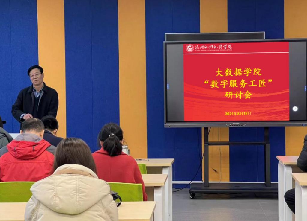 我院组织召开“数字服务工匠”研讨会 8月18日,在教5403召开“数字服务工匠”人才培养模式研讨会。会议由大数据学院院长宁正元主持,校外专家、行业代表、教师代表等20余人参会。 会上,宁正元指出“数字服务工匠”是服务制造业、金融业、零售业等领域急、断、缺的短板人才,我们要打造“教-学-训-研-用-创”螺旋递进教学模式,建设“数-技-商-创”融通创新平台,打通教育链、人才链、产业链和创新链,全面形成新时代大数据背景下跨界融合、循环共生的“数字服务工匠”人才培养的新范式. 会议邀请了福州大学等高校相关专业负责人、福建地区相关行业专家对数字化人才培养的行业发展趋势进行了解读。我院各专业负责人汇报了本专业“数字服务工匠”人才培养模式、取得的成效、存在问题及下一阶段举措,听取了行业代表对数字化服务人才的意见和建议。与会人员围绕研制习近平谈数字科技读本、搭建产学研数字融通平台、制定数字服务人才标准、创建“C-O-M”数字化服务工匠培养新模式等方面进行了交流与探讨。