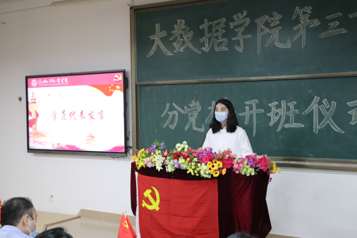 【党建动态】大数据学院分党校第三十八期培训班开班仪式顺利召开 为进一步夯实提升我院积极分子理论修养与综合素质,营造我院积极学习党的理论、方针和政策的良好氛围,重温党的百年奋斗历程,以更好成绩喜迎二十大的召开,经校党委批准,大数据学院分党委于2022年4月29日下午18:30在教5203举办第三十八期分党校开班仪式。出席本次仪式有大数据学院分党委书记、分党校校长、学院副院长陈宏伟副教授,分党委委员杨兴鑫同志,学生各支部委员黄椤茜、郑隐馨及培训班的全体学员。此次仪式由学生第一党支部书记潘云燕同志主持。 一、奏唱国歌 大会第一项,全体起立,奏唱国歌。各学员以庄严的神情和雄壮而宏亮的国歌声表达出了自己坚定不移加入中国共产党的决心。 奏唱国歌 二、宣读开班决议 大会第二项,由党校负责老师潘云燕同志宣读本次开班决议,决议中指出本次党校培训的上课以及考核方式,通过培训,入党积极分子不仅要通过理论教育、党性教育坚定的政治信仰,更要在实践中不断总结,不断进步,理论联系实际。希望同学们坚持理想信念,坚持勤奋学习,坚持党的根本宗旨,坚持勤奋工作,坚持遵守党的纪律。 潘云燕同志宣读开班决议 三、学员代表发言 大会第三项,由学员代表李玲发言,她表示:“我们要珍惜在党校学习的宝贵机会,要努力做到:端正学习态度,积极主动学习,上课认真听讲,做好学习笔记,完成培训作业,要以高度的自觉性和自律性严格要求自己,通过本次党校学习,努力提升理论修养和政治觉悟,争取早日加入党组织,做与新时代同向同行的优秀新青年。” 学员代表李玲发言 四、大数据学院分党委书记、副院长、分党校校长陈宏伟同志讲话 大会第四项,由大数据学院分党委书记、副院长、分党校校长陈宏伟同志发表讲话,首先,陈宏伟书记对参加本期培训班的各位同学表示热烈的欢迎和衷心的祝贺。随后他提到:在中国共青团迎来成立100周年之际,在五四青年节即将到来之际,习近平总书记考察中国人民大学并同师生代表亲切座谈,对当代青年提出殷切期望和明确要求,在考察调研中,总书记勉励全国广大青年,牢记党的教诲,立志民族复兴,不负韶华,不负时代,不负人民,在青春的赛道上奋力奔跑,争取跑出当代青年的最好成绩。 陈宏伟同志讲话 他对本次培训班学员提出三点殷切希望: 第一,在学习中提高站位。 学可以明智,习可以增慧。我们的党是学习型政党只有不断学习,才能永葆与时俱进的动力,经久不衰的生命力。陈宏伟书记要求各青年学生一方面要加强政治理论的学习,另一方面要加强专业知识的学习,前者是方向,后者是基础。必须加强对党的理论知识的学习,以此来提高思想政治素质,提高站位,加强党性修养树立坚定的信念和崇高的理想。 第二,在奋斗中担当使命。 陈宏伟书记指出,作为一名积极向党组织靠拢的青年学子,作为一个要为实现中华民族伟大复兴的中国梦而奋斗的青年人,必须坚持做到立大志,明大德,成大才、担大任,努力将个人奋斗融入党和人民的事业中。 第三,在实践中争做先锋。 陈宏伟书记强调,入党不能只停留口号上,停留在纸上,停留在思想上,更要体现在实践中,在实践中严格对照党员条件,从严要求自己,努力全面发展,以自己的实际行动接受党的考验,在实践中争做先锋。 五、奏唱国际歌 大会第五项,全体起立,奏唱国际歌。在庄严的歌声中开班仪式圆满结束。 奏唱国际歌 本次开班仪式的顺利召开,开启了我院2022年学习党的理论知识的新篇章,同时为我院学生讲授了一堂生动的思政大课,进一步引导教育我院学生端正入党动机,努力做到坚定信念、志存高远、认真学习、脚踏实地,让青春在为祖国和人民的不懈奋斗中绽放出绚丽之花。