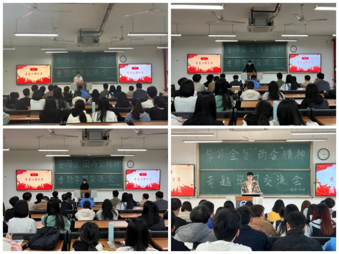 各学生党支部开展专题学习交流会,组织党员结合会议内容及热点话题进行讨论、交流,进一步激发思想活力;分享自主学习报告的心得体会,引导党员谈认识、讲体会、话感受,进一步强化思想认识,真正推动“两会”精神入心入脑。