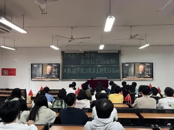 大数据学院分党委组织开展清明节主题党日活动 家国又清明,鲜花献英烈。为致敬时代先锋,寄托对革命先烈的哀思,引导党员铭记先烈光辉事迹、继承先烈遗志,将为国为民的革命精神与爱国精神内化于心,外化于行,大数据学院分党委于2023年4月4日在实3-102开展“祭奠英烈弘精神,赓续红色扬血脉”清明节主题党日活动。 一、红色观影悟精神 英雄烈士是民族的脊梁、时代的先锋。党员共同观看《英雄回家》第一集《七十年的回家路——侯永信烈士》,进一步体会到抗美援朝老兵归家的艰辛与不易,深刻感受到革命英烈们坚守初心、无私奉献的伟大精神。 二、云祭英烈寄哀思 在观看纪录片后,组织党员借助“2023·崇尚·清明祭英烈——网上祭英烈”活动专题页面,通过现场默哀进行网上祭奠。全体党员肃然站立,默哀缅怀,致敬先烈,表达对革命英烈深切的悼念和敬仰。 三、诵读家书品初心 绿水青山聚英灵,红色家书抒壮歌。随机抽取党员上台诵读革命先烈的红色家书,让信仰的力量在党员中继续焕发、传递、成长。以声寄情,感受先辈们对革命事业矢志不渝的忠诚坚贞和历久弥坚的赤诚初心。 四、分享经典续荣光 天地英雄气,千秋尚凛然。党员上台分享红色革命故事,用质朴的语言、真挚的感情,表达出对革命先烈的崇敬之情。缅怀先烈丰功伟绩,传承弘扬革命精神,努力在新时代新征程上续写新的时代荣光。 大数据学院办公室 2023年4月5日