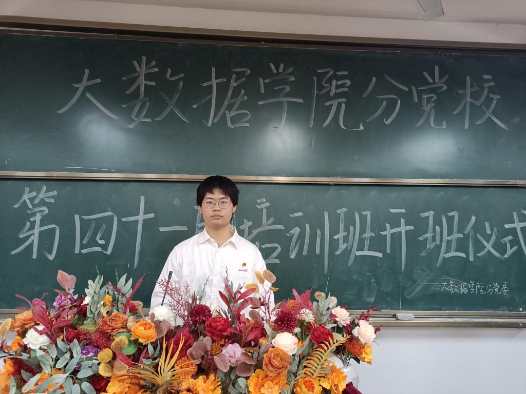 【党建动态】大数据学院分党校第四十一期培训班开班仪式顺利召开 为增强新时代青年党性修养和宗旨意识,提高政治站位,强化理论武装,筑牢思想根基,为发展党员蓄好“源头活水”,大数据学院分党委于2023年4月27日中午于实3-301举办第四十一期分党校开班仪式。参加本次开班仪式的有大数据学院分党委书记、副院长、分党校校长陈宏伟副教授,全体辅导员及四十一期党校培训全体学员。开班仪式由学生第一党支部书记潘云燕主持。 一、奏唱国歌 与会师生全体肃立,共同奏唱国歌,党校开班仪式在铿锵有力的歌声之中正式拉开序幕。 二、学员代表发言 学员代表周涛同学发言。他表示:作为新时代青年,我们承担着继往开来、迎接挑战、推动中国走向世界强国之林的历史使命,在党校学习期间,各位学员要笃学不倦,站稳政治立场;要增强党性,严明纪律观念;要坚定信仰,加强理论武装。 三、大数据学院分党委书记、副院长、 分党校校长陈宏伟同志讲话 陈宏伟书记对参加本期培训班的学员表示祝贺,指出每位学员都应当怀抱梦想,脚踏实地,自觉把小我融入祖国的大我之中,在全面建设社会主义现代化国家新征程上奋勇争先,迎着中华民族伟大复兴的光明前景阔步前行。他对本次党校培训的学员提出三点殷切希望: 第一,对党忠诚,不负人民。 要不断筑牢信仰之基,把稳思想之舵,不改其心、不移其志、不毁其节,以实际行动和作为诠释对党的绝对忠诚。坚定马克思主义的信仰,牢记党的使命,为共产主义事业奋斗终身。 第二,注重实际,实事求是。 要起而行之、勇挑重担,善于独立思考,敢于坚持真理,坚持一切从实际出发,发扬求真务实、脚踏实地的作风,同党和国家一起为迈入新的伟大进程而一同奔跑。 第三,增强本领,善作善成。 要学会吃苦在前、享乐在后,甘于做一颗永不生锈的螺丝钉,在学习、实践,再学习、再实践的过程中得到历练提升。切实提高本领,锐意进取,精于学习,勇于开拓,成就不平凡的功绩。 四、奏唱国际歌 伴随着《国际歌》肃穆而庄严的旋律,本次开班仪式圆满结束。 本次培训班旨在引领学员们以坚定的理想信念,砥砺对党的赤诚忠心。相信在未来的学习生活中,各位学员定能以“功成不必在我”的精神境界,以“功成必定有我”的历史担当,在这个大有可为的年代为祖国的繁荣昌盛贡献自己的力量。 大数据学院办公室 2023年4月28日