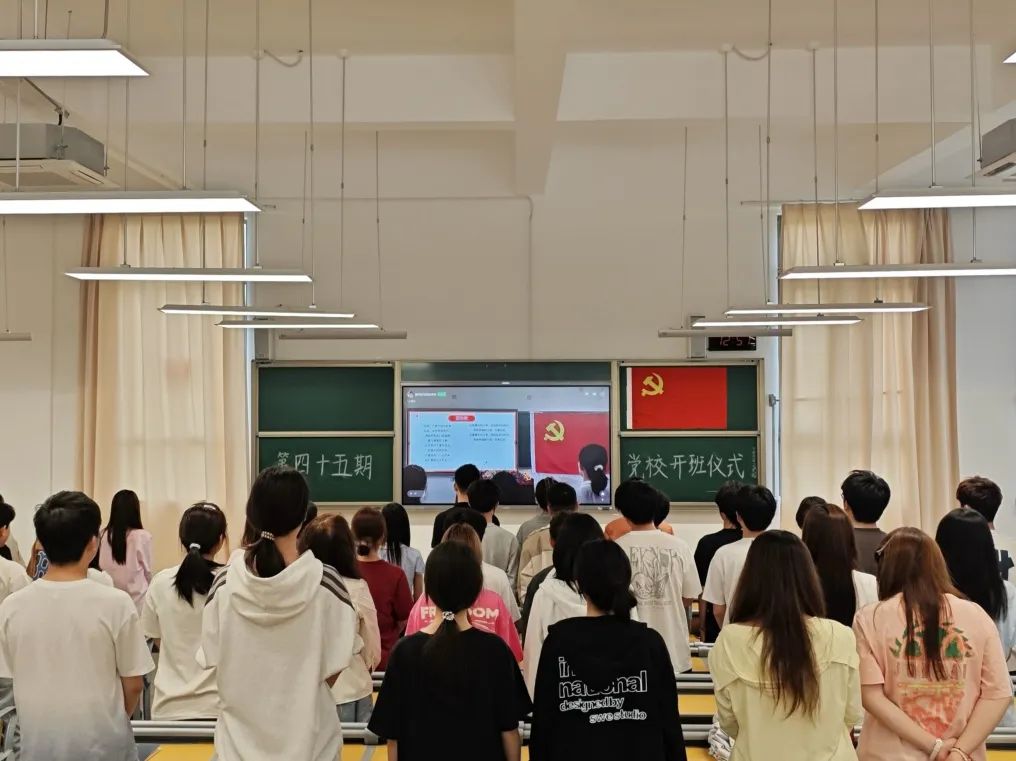 【党建动态】大数据学院分党校第四十五期培训班开班仪式顺利召开 为提升入党积极分子的政治素养,筑牢理想信念根基。大数据学院分党委于2025年4月18日,分别在长乐校区教1-101和滨海校区教2-101采用线上线下相结合的方式,举行第45期入党积极分子培训班开班仪式。学院分党委书记、副院长、分党校校长汪翠茹同志,学院分团委书记、办公室副主任、分党校教务长黄荣华同志,各学生党支部书记,全体辅导员及第四十五期分党校培训班全体成员参加开班仪式。仪式由分党委组织委员翁君喆主持。 奏唱国歌 全体师生奏唱国歌。 宣读开班仪式 黄荣华宣读大数据学院分党校第四十五期入党积极分子培训班开班决议,并对本次党校的培训内容、培训方式、成绩评定、纪律要求等进行了详细的说明。 学生代表发言 何圣楠作为第四十五期党校培训班学员代表发言。他表示党校学习是筑牢信仰、锤炼本领的“熔炉”,并向全体学员提出要践行知行合一、涵养清朗品格、凝聚青春合力三点倡议。 汪翠茹书记讲话 汪翠茹总结讲话,并对本次党校培训的学员提出三点希望: 第一、学思结合,践悟知行。 各位学员要珍视党校培训契机,认真学习思考,主动查阅资料,将理论知识与日常学习、生活相联系,大胆创新,做到学用相长、知行合一。 第二、砥砺作风,锤炼品格。 培训期间,全体学员务必以高标准严格要求自己。严守校纪校规,维护优良学风、作风、校风;积极参与学院各项活动,在实践中涵养高尚品德,在点滴行动中展现党校学员的良好形象,将个人良好作风融入校园生活,为学院“迎评促建”工作主动担当,发挥模范作用。 第三、担当使命,积极作为。 在实现中华民族伟大复兴的关键时期,青年应当具备坚定的意志与担当精神,应立足自身,在学业上精益求精,积极参加各类比赛,为学院学术发展添砖加瓦。要志存高远,把所学知识应用于实际,将个人成长紧密融入国家发展大局,为推进中国式现代化贡献智慧与力量。 奏唱国际歌 开班仪式在国际歌中落下帷幕。本次开班仪式标志着本学期党课培训的开始,希望第四十五期党校全体学员在接下来的学习中坚定信念、学有所成,以实际行动迎接即将到来的本科教育教学审核性评估,以更加昂扬的姿态投身新时代中国特色社会主义伟大事业。 大数据学院办公室 2025年4月21日