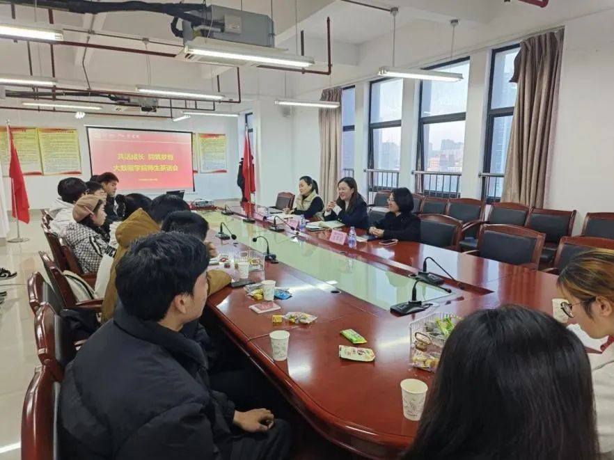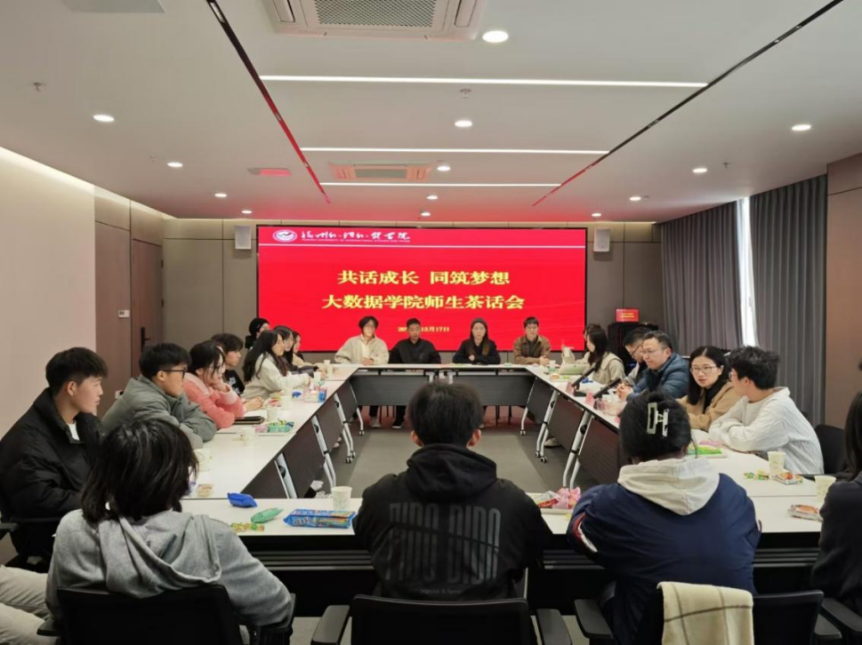 【师生共话】(第十一期)“共话成长 同筑梦想”大数据学院师生茶话会 师生共话 为进一步落实“以生为本”的工作理念,搭建学院与学生的沟通桥梁,倾听学生心声,解决学生难题,提升学生幸福感和满意度。2024年12月17日下午,大数据学院院长陈震同院长助理黄建琼,副院长叶福兰同副院长、分党委书记汪翠茹分别在滨海校区和长乐校区开展“共话成长 同筑梦想”大数据学院师生茶话会。 茶话会现场氛围轻松活跃,学生代表就同学们关心的问题畅所欲言,围绕课程学习、实习就业、职业规划、升学辅导、社会实践、校园生活等方面进行了交流互动,并提出了意见和建议。针对学生代表提出的问题,学院领导一一进行了耐心细致的解答。 与会领导们关心询问了在座学生们在校的学习生活情况,陈震院长特别强调了此次座谈会旨在倾听同学们的心声和需求,切实帮助大家解决实际问题,希望同学们能够畅所欲言,为学院的发展建言献策。此次茶话会给学生们提供一个师生交流互动的平台,解决学生的诉求,同时让学生们感受到了学院对他们的关心与重视,增强了学生的归属感。未来,学院将继续搭建好师生沟通交流平台,畅通学生反映问题的渠道,继续助力学生成长成才。 大数据学院办公室 2024年12月20日