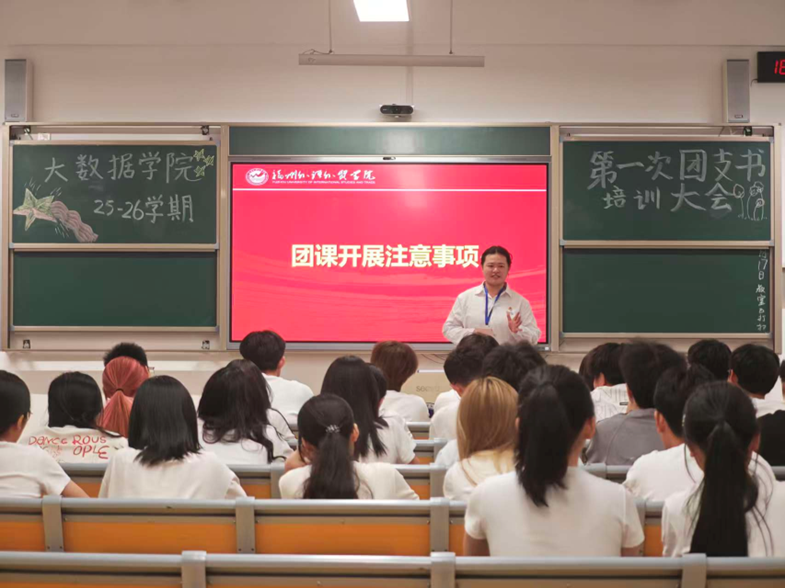 为进一步夯实基层团组织建设,提升新生团支书的理论水平与履职能力,明确其作为青年学生思想引领者与组织凝聚者的核心作用,大数据学院于2025年10月17日及21日,分别在滨海校区教2-103、教2-202教室,有序开展了新生团支书专题培训会与主题示范性团课。
