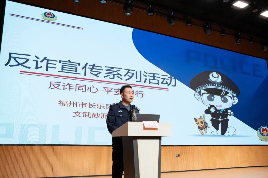 为提升同学们的反诈防骗意识与能力,筑牢校园安全防线,保障学生的财产安全与生活环境。11月18日下午,大数据学院联合总务处在滨海校区云帆报告厅开展反诈教育讲座。本次讲座邀请了长乐区文武砂派出所副所长蒋桂文主讲。