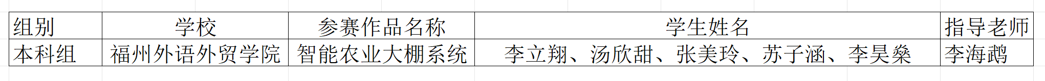 根据《开元网页版举办2025年海峡大学生人工智能创意赛的通知》,大赛决赛于2025年10月24日至25日在福州大学举行。经专家组评审,我院李海鹉老师指导的团队(团队成员:李立翔、汤欣甜、张美玲、苏子涵、李昊燊)凭借参赛项目《智能农业大棚系统》荣获二等奖。