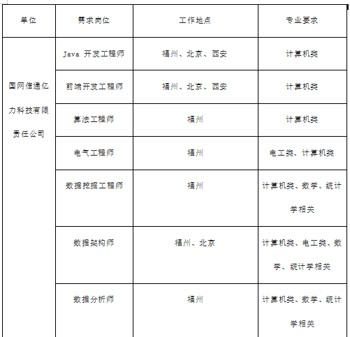【就业指南】信产亿力科技2023届校园招聘 梦想的底色 多彩万千逐梦的旅途 各绽精彩高起点 创实力 研聚力方能无惧挑战,“信步” 未来信产亿力科技2023届校园招聘正式启动以科技创新之力赋能梦想之旅邀你“亿”起“信步”未来 国企星平台 国网信通亿力科技有限责任公司(以下简称信产亿力科技)是国家电网有限公司直属单位国网信通产业集团的全资子公司,于2000年12月28日注册成立,注册资本 4.096亿元,现有员工1000余人。公司作为专业服务于能源数据价值生态构建的综合型供应商,主要从事数据基础设施建设和运营,数据安质终端研发和制造,数据平台工具开发与推广,数据智慧应用和运营服务等业务。 科创智未来 信产亿力科技作为国家规划布局内重点软件企业及高新技术企业,是福建省智能电网大数据工程技术研究中心、福建省首批新型研发机构、福建省企业技术中心,获得计算机系统集成及服务资质、信息安全风险评估、灾难备份与恢复服务、应急处理、安全工程、安全开发一级资质及信息安全集成二级资质,通过 CMM15和1TSS认定,具备安全生产许可证及施工劳务不分等级资质,获得质量管理体系、环境管理体系、职业健康安全管理体系、信息安全管理体系、IT服务管理体系认证。拥有526项软件著作权、196项专利授权、237项各类科技奖励。其中省、部级科学技术进步奖一等奖3项,国家电网有限公司科学技术进步奖一等奖5项,是国家知识产权优势企业、中国能源大数据领军企业、福建省工业和信息化省级龙头企业、厦门市重点软件和信息技术服务企业、AAA企业信用等级企业。 福利 六险二金 职工食堂 职工体检 职工疗养子女医疗费 新员工住 高温津贴 节日慰问生日贺礼 婚育贺礼 劳保服装(工装) 工会活动 舞蹈 瑜伽 健身 篮球 足球羽毛球 乒乓球 酷跑 摄影 剧本杀多元校招岗 备注:1.数学、统计学相关专业仅限硕土研究生;2.北京地区岗位仅限硕士研究生。 创梦有指引 招聘流程及报名方式 阶段1:即日起-11月(提前批校园招聘) ①流程 网申--在线测评--提前批面试-发放预录用 Offer(择优发放面试直通卡) ②报名方式(扫码进入): 进入“网申入口”,选择“国网信通亿力科技有限责任公司 ”或下属子公司投递简历。 阶段2:2022年11-12月(国家电网有限公司统一招聘) ①流程: 报名 -资格审查 --全国统一笔试-- 面试--录用签约 ②报名方式: a.登录国家电网有限公司人力资源招聘平台http://zhaopin.sgcc.com.cn b.注册登录、完善个人简历,关注招聘公告(待2023年统一招聘公告发布): c.选择【国冈信息通信产业集团-国网信通亿力 科技有限责任公司】及下属招聘单位进行报名。 阶段3:2023年1-6月 ①3-4 月 国家电网有限公司统一招聘春招(流程及报名方式参照2阶段) ②其他时段投递公司邮箱进行报名(仅限非国网统招时间) 邮件标题:姓名+学校+学历+专业+应聘岗位名称 信产亿力科技:ylkj_hr@126.com 信产亿力电力:yidl_hr@163.com 信产亿榕信息:yironghr@163.com 关注企业公众号官微 欢迎加入QQ 了解一手校招资讯 毕业生招聘交流群 公司地址及联系电话 信产亿力科技 公司地址:福建省福州市鼓楼区福州软件园 B区“国网信通亿力科技园 ” 联系电话:0591-86128011(常老师) 信产亿力电力 公司地址:福建省福州市鼓楼区福州软件园B区 14号楼 联系电话:010-63389982(范老师) 信产亿榕信息 公司地址:福建省福州市鼓楼区福州软件园G区 20号楼 联系电话:0591-38371759(朱老师) 加入我们 许梦想一处广阔天地 由此启程非凡之旅 与优秀的你“亿”起“信步”未来 大数据学院办公室 2022年11月25日