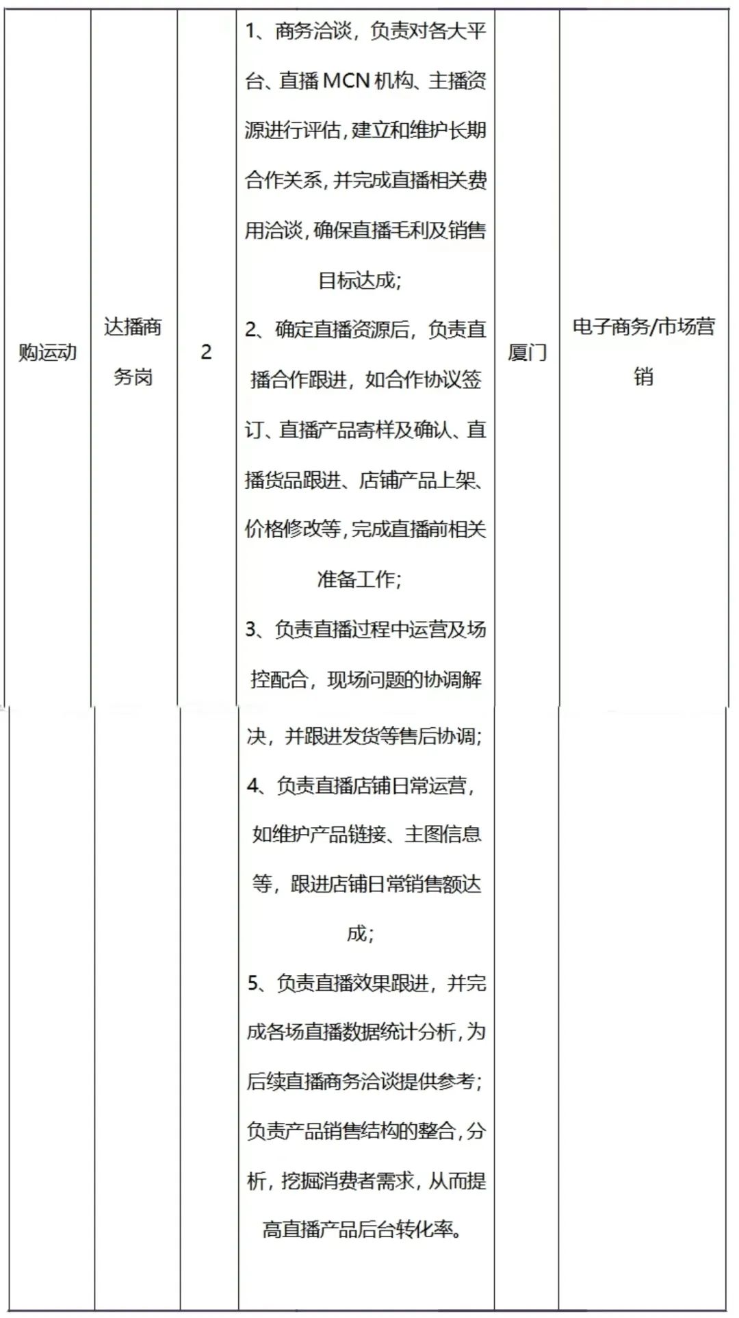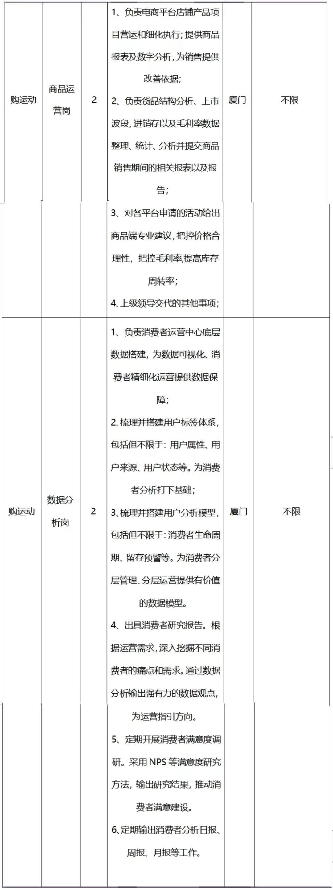 【就业指南】福建泉州匹克体育用品有限公司 一、公司简介 匹克体育是一家致力于“PEAK”品牌体育与运动产品的设计、开发、制造、分销及推广,品类覆盖球、跑步、综训、运动生活、儿童等多个领域,至今已有三十年的发展历史。 1989年创立至今,作为国家体育产业示范基地,匹克体育始终以“创国际品牌,做百年企业”为宗旨,先后在北京、美国、厦门、泉州、广州等地建立5个全球设计研发中心,在泉州、宜春等地建立3个先进制造及物流仓储基地,在西安建立全球新材料创新中心。目前,匹克线下零售网点已在全国省市基本实现全覆盖,线上拥有完善的第三方平台营销网络,并布局全网全渠道自建商城。产品出口110多个国家和地区,遍布欧、美、亚、非、澳等五大洲,在同行内率先建立起中国民族品牌的全球化战略框架。 近年来,公司以科技创新为驱动,实施产业升级。2018年底,由我司自主研发的“态极”科技,因其鞋底瞬间软弹的特性,打破国际技术垄断,受到了消费者的热捧,引爆市场。依托于“态极”科技,公司还开发出跑步鞋、休闲鞋、拖鞋、篮球鞋等系列产品,多品类销售跻身行业前五,成为新国潮代表。截止目前,公司拥有核心专利近250个,还在3D打印科技、超氢科技等前沿科技创新引领。 未来,匹克将以篮球、跑步为核心,积极拓展儿童、健身、瑜伽、游泳等市场,在不断满足消费升级的基础上,向产品线、产业链延伸,实现从单一的运动装备制造商向体育综合解决方案提供商的转型升级。 二、招聘需求 三、薪资福利 (一)一经录用即签订正式劳动合同,享有法定各类保险的待遇; (二)公司为员工提供舒适的住宿条件,宿舍配有独立卫生间、阳台、空调、热水器等; (三)公司配有灯光篮球场; (四)提供完善系统的员工入职及在职培训机制; (五)广阔的职业提升空间,公平的晋升机制; (六)节假日发放相关福利(水果,服装、鞋子、匹克代金券等等); (七)公司员工享有相关福利补贴(满勤奖、伙食补贴等); (八)享有带薪婚假,结婚礼金、带薪病假; (九)公司制度规定的其他福利。 四、联系方式 联 系 人:肖女士 15959548678 电 话:(请先投递简历,非请勿扰,合则约见) 传 真:0595-2911237(请在左上角注明:应聘某部门某职务字样) 泉州通讯地址:福建省泉州市丰海路1569号匹克国际中心 厦门通讯地址:厦门观音山匹克大厦 惠安分厂:惠安县城南工业区,泉州乘到崇武或小岞车到城南匹克下。 邮政编码:362000 电子邮件:hr@chinapeak.com 公司网址:http://www.peaksport.com 大数据学院办公室 2023年10月26日