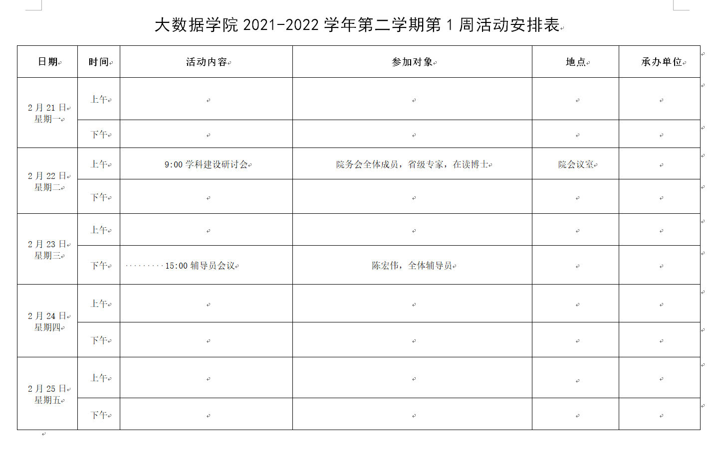 大数据学院2021-2022学年第二学期第1周活动安排表