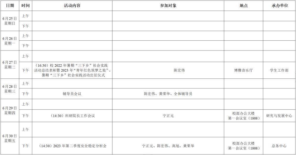 大数据学院2022-2023学年第二学期第20周活动安排表
