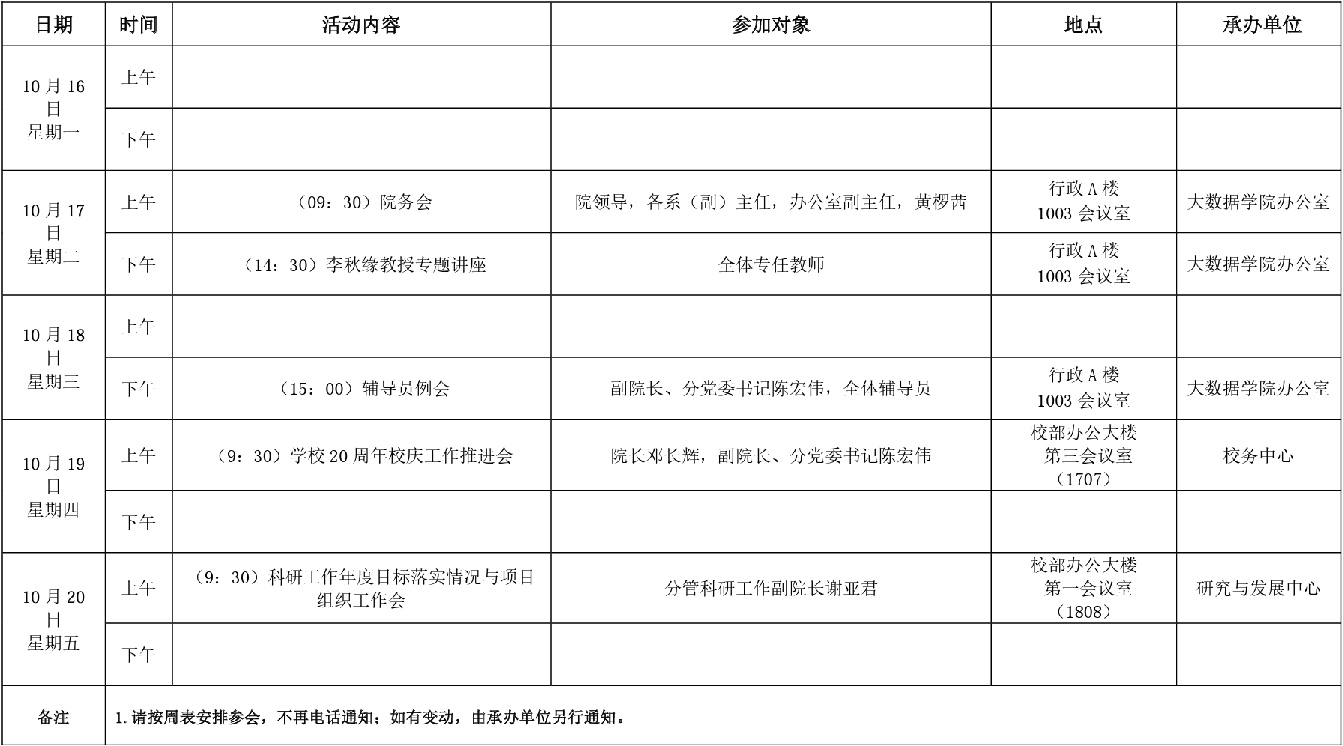 大数据学院2023-2024学年第一学期第7周活动安排表