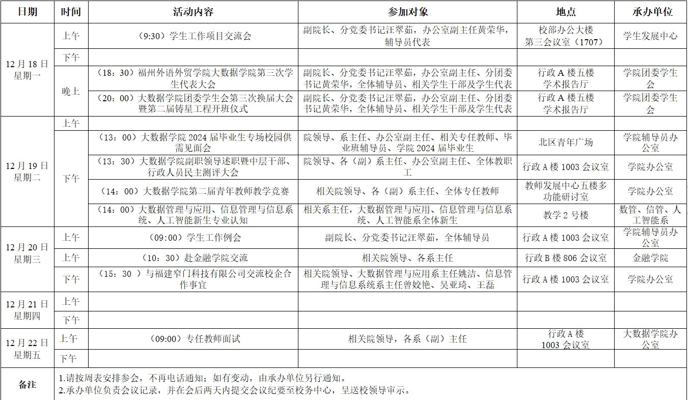 大数据学院2023-2024学年第一学期第16周活动安排表