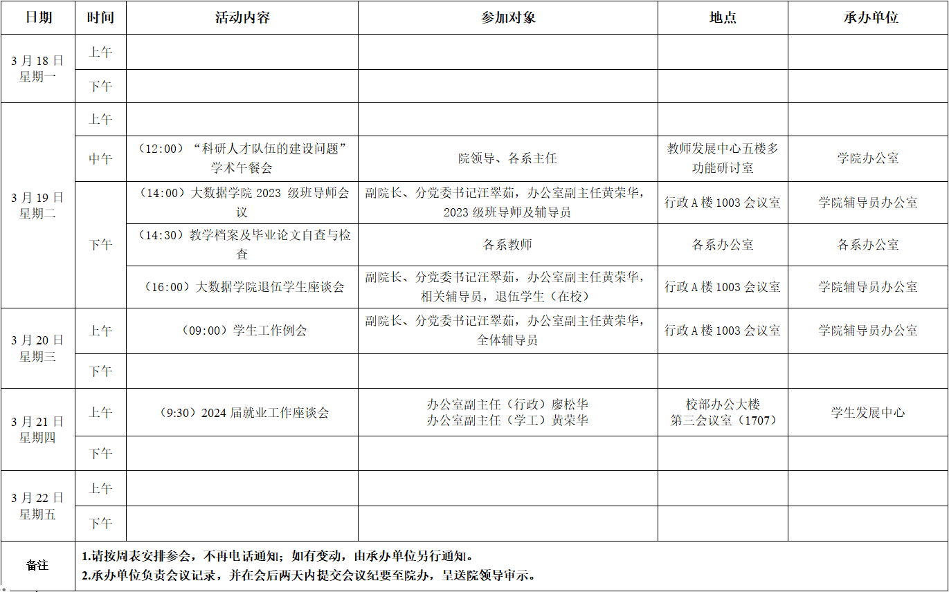 大数据学院2023-2024学年第二学期第4周活动安排表
