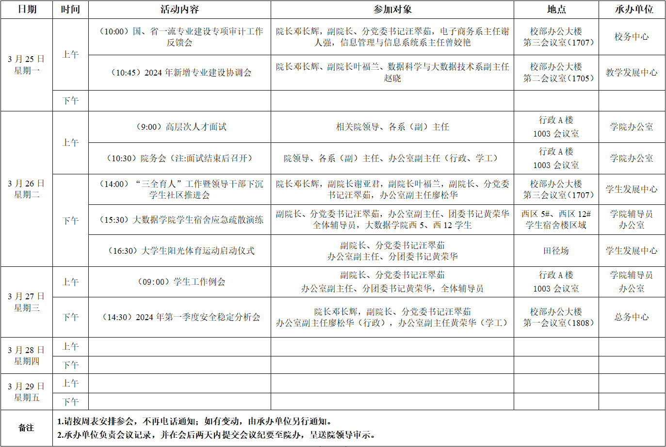 大数据学院2023-2024学年第二学期第5周活动安排表