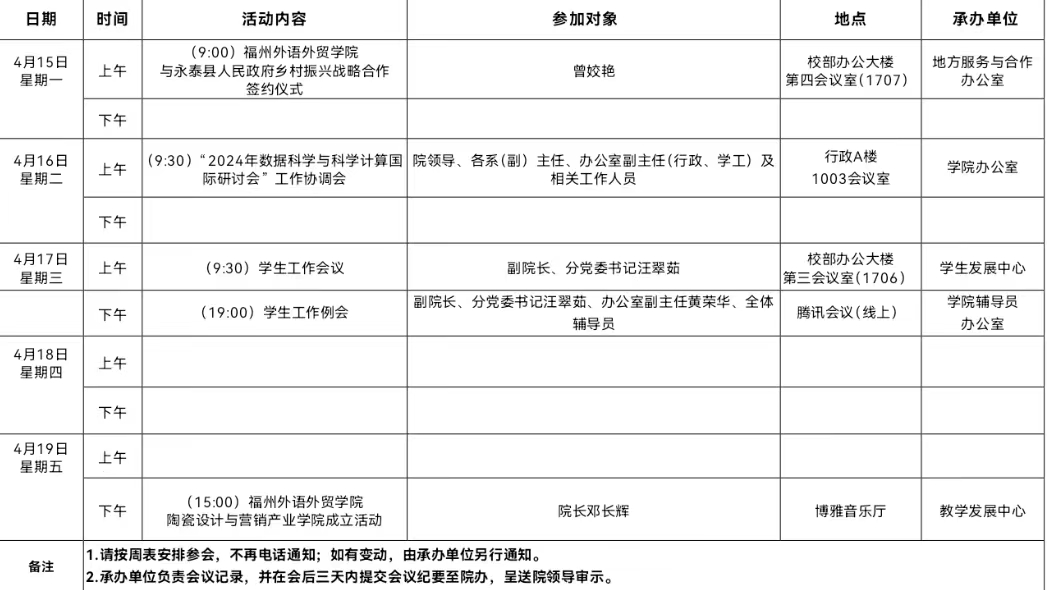 大数据学院2023-2024学年第二学期第8周活动安排表