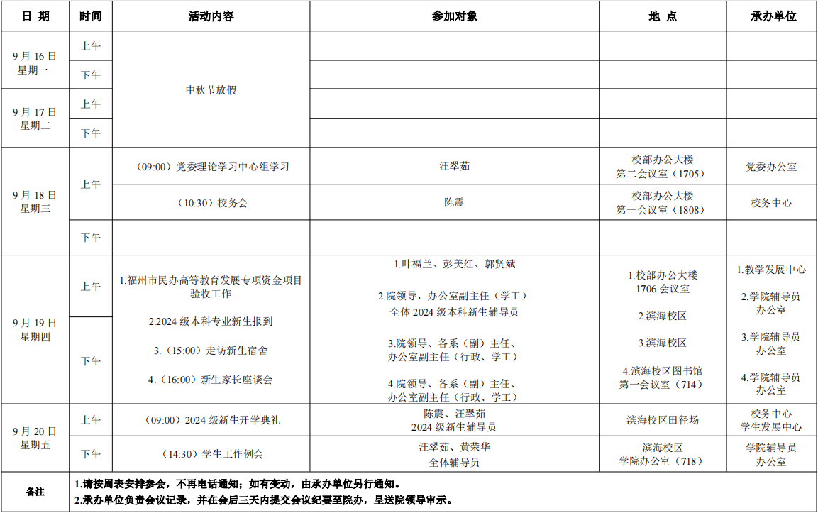 大数据学院 2024-2025 学年第一学期第3周活动安排表
