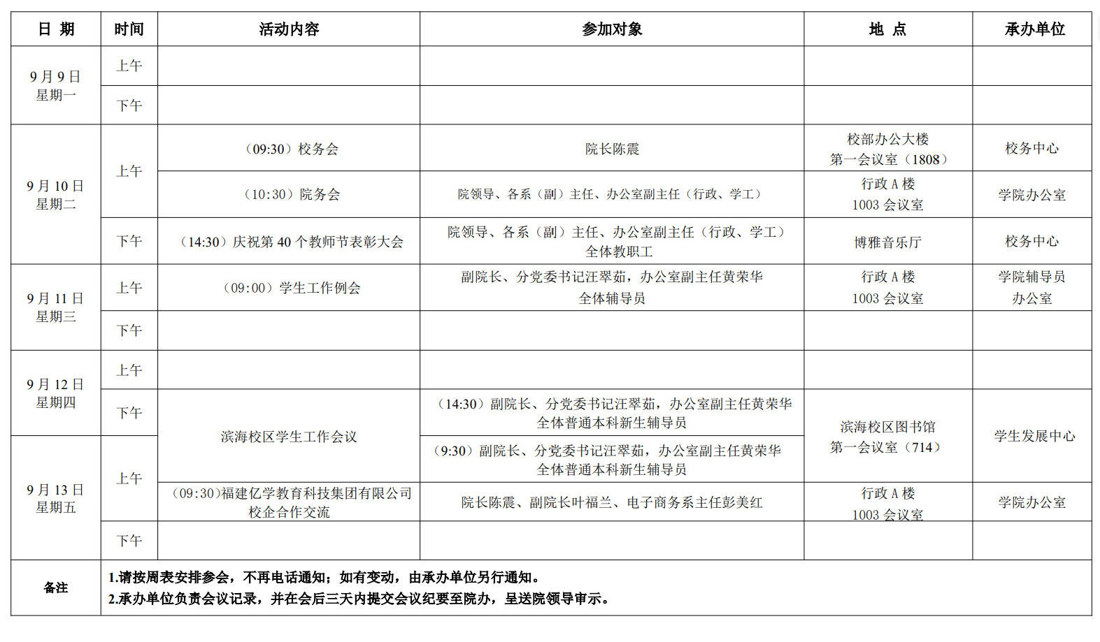 大数据学院 2024-2025 学年第一学期第 2 周活动安排表