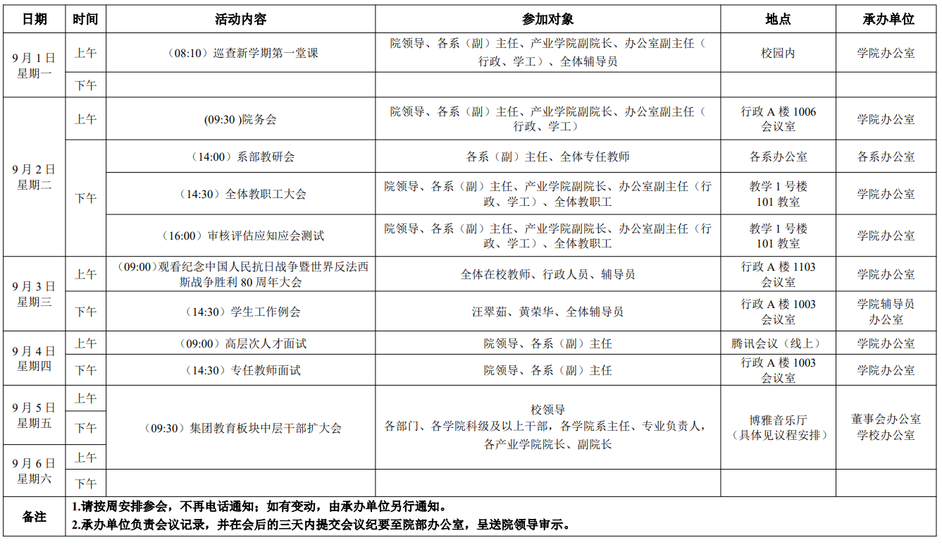 大数据学院 2025-2026 学年第一学期第 1 周活动安排表