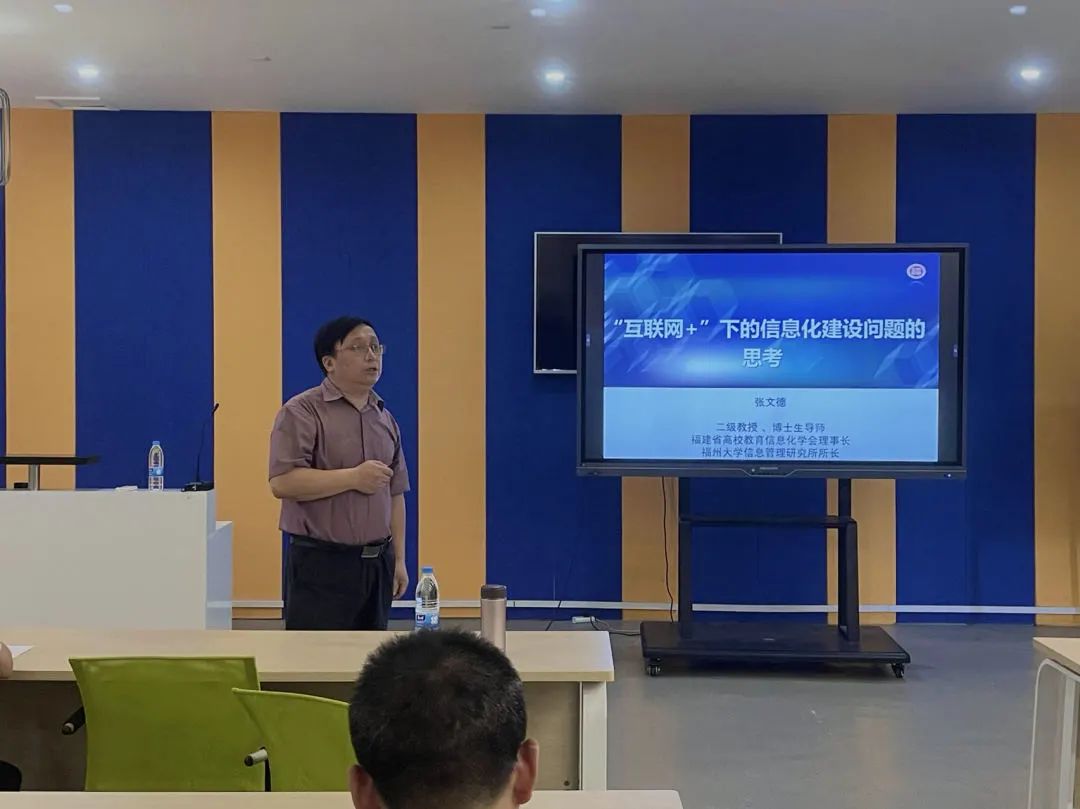 5月30日下午2:30,我院邀请福建省高校教育信息化学会理事长、福州大学信息管理研究所所长张文德教授于教5403开展《“互联网+”下的信息化建设问题的思考》专题讲座。本次讲座由副院长谢亚君教授主持,我院全体专任教师参加此次讲座。