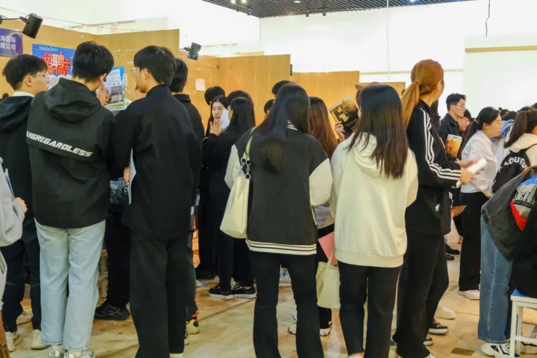 招聘会现场的交流声和咨询声此起彼伏,毕业生带着简历积极与各用人单位沟通交流,寻找适合自己的岗位。用人单位的负责人热情回应毕业生,详细介绍单位情况,并耐心解答求职者问题。