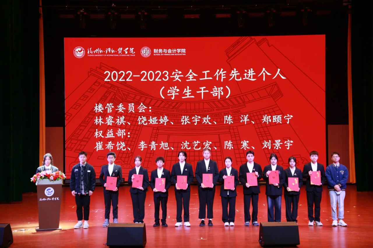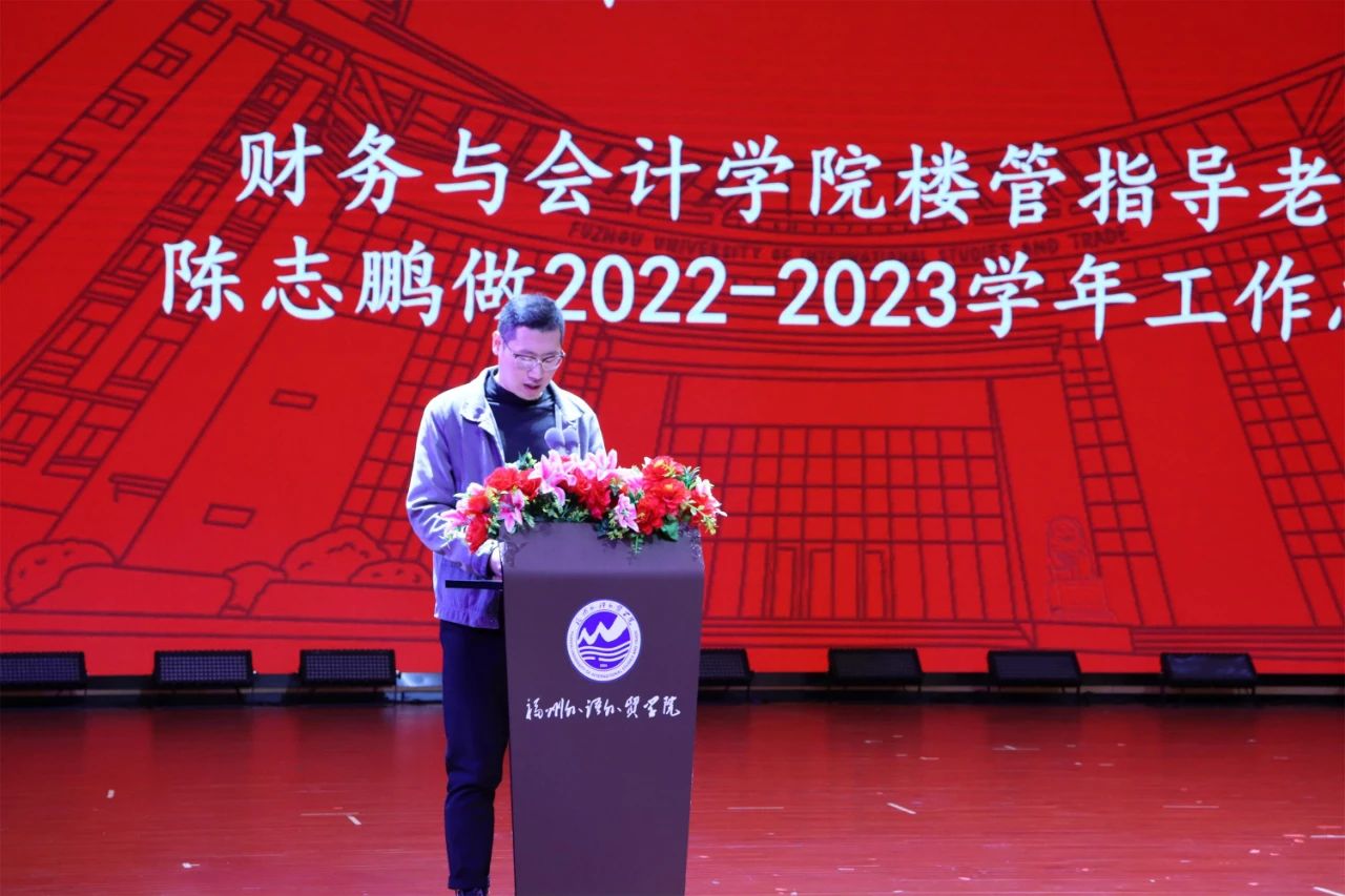 12月22日,福州外语外贸学院财务与会计学院召开2023年表彰大会。财务与会计学院分党委书记、副院长李川,团委书记、办公室副主任潘云燕,分党委组织委员、学生第四党支部书记谢叶敏,学生第一党支部书记林敏,学生第二党支部书记陈志鹏,学生第三党支部书记潘诚耀,团委副书记徐沛霖,学生会秘书长付起,以及全体辅导员参加大会。本次大会由曲星宁主持。