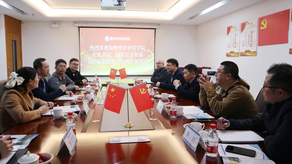 在聚创教育集团,集团常务副总裁熊东辉、副总裁江来、集团旗下聚创考研、优公公考事业部相关负责人及校友代表陪同参观聚创教育厦门总部大楼,并开展座谈交流,双方一致希望同向发力,相互成就,共同提升学生升学、就业竞争力。