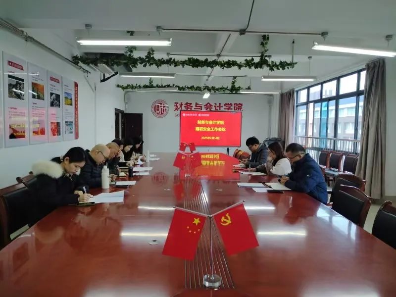 2月14日,福外财务与会计学院召开2025年春季学期期初安全工作会议,学院安全稳定工作领导小组成员参会。会议深入学习贯彻上级安全工作会议精神,部署新学期安全重点工作,为学院高质量发展筑牢安全防线。