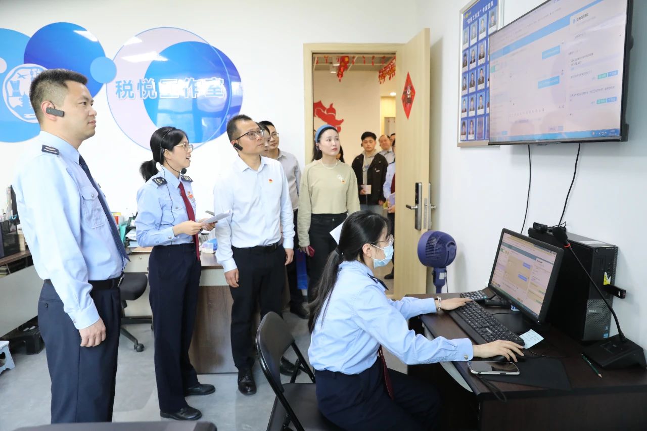 活动在“沉浸式”研学体验中展开,学院师生一同来到区办税服务厅在税务干部带领下参观了自助办税区、综合窗口、“税悦工作室”等前中后台功能区,深度体验税务窗口岗位特点,通过电子税务局APP、福建税务公众号等平台,亲自操作体验网上办税流程,感受税收服务的智能化与便捷化。