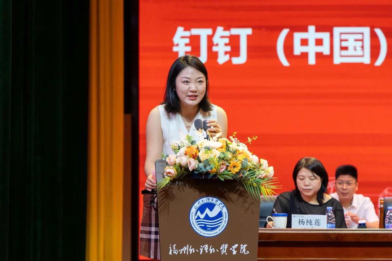 仪式上,产业学院院长林晓薇教授作表态发言,表达了推动产教融合、培养数智化人才的决心。钉钉(中国)信息技术有限公司校企合作事业部负责人霁蓝作为企业代表致辞,强调了校企合作在数智化人才培养中的重要性,并介绍了钉钉在课程共建、实训基地、认证体系等方面的合作计划。黄建平在总结讲话中指出,产业学院的成立是学校服务区域经济发展、深化产教融合的重要举措,未来将聚焦“政产学研用”协同机制、双师型团队建设、实践创新平台打造三大任务,为数字中国建设培养高素质应用型人才。