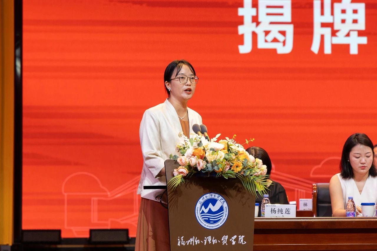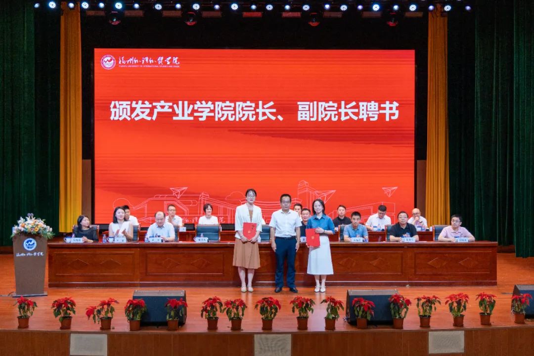 仪式由产业学院副院长林楠主持。在庄严的国歌声中,活动正式拉开帷幕。福州外语外贸学院执行校长黄建平教授宣读了产业学院成立及人事任命文件,宣布林晓薇教授兼任产业学院院长,林楠担任副院长。随后,黄建平为产业学院授牌,并为院长、副院长颁发聘书。