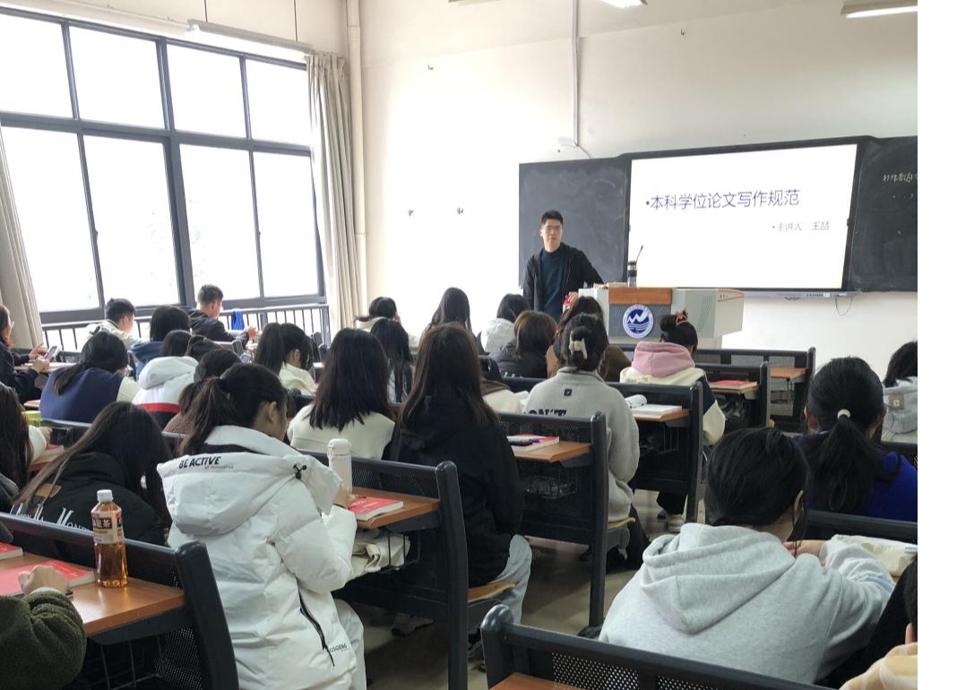 王喆老师从本科学位论文的选题、资料收集、论文撰写形式规范与实质规范等方面进行讲解。讲座过程通过现象演示等方式介绍了中国知网等主流文献阅读下载网站并对个别学生的问题进行了解答。