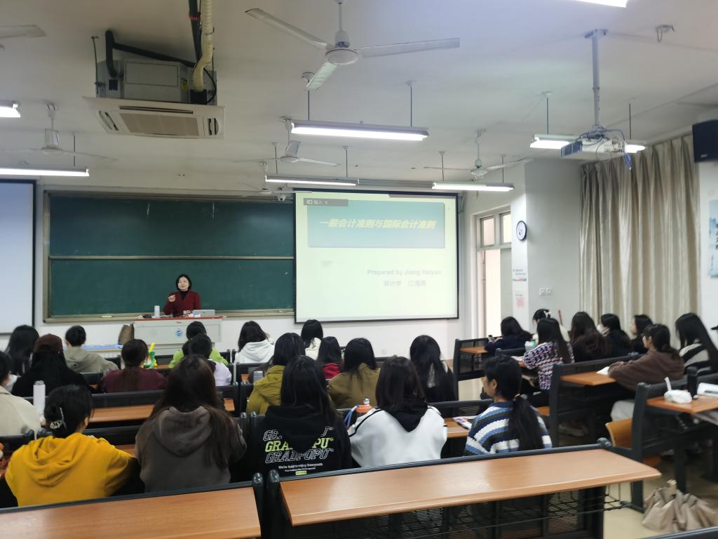 2023年2月28日下午,我院教师江海燕于教学楼5101举行了题为“一般会计准则与国际会计准则”的专题讲座,2020级审计学1班的全体同学参加了此次活动。
